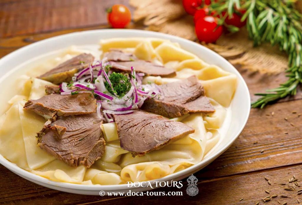 The traditional Kazakh recipe for horse sausage is “Kazy.” This is one of the most ancient recipes. Beshbarmak is translated as “five fingers,” but this is the everyday name of the dish. In the literary Kazakh language, this dish is called “Kazaksha et,” which means “meat in Kazakh style!” This seemingly very simple dish came to us from Kazakhstan and became a traditional dish in such countries as Uzbekistan, Kyrgyzstan, Tajikistan, etc. It is prepared in different ways: from lamb and beef. Beshbarmak has become such a widespread recipe that now you can try it in any oriental restaurant. But you can only try the real recipe for this ancient dish at home! * Almost everyone gets to know beshbarmak first with their ears, then with their eyes, then with their sense of smell, and only then with their hands and mouth!