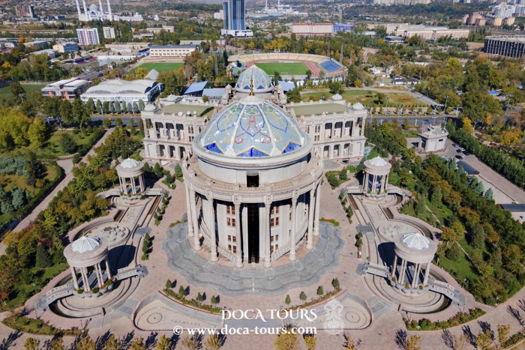 Die sonnige Hauptstadt Tadschikistans beeindruckt mit ihren Plätzen und Parks. Im Zentrum der Stadt gibt es eine große, grüne Fläche. Besonders im Frühling ist sie zauberhaft: Die strahlende Sonne des Südens bringt selbst die feinsten Tropfen der imposanten Springbrunnen zum Funkeln. Direkt gegenüber befindet sich das mit Säulen verzierte Gebäude des S. Aini Opern- und Balletttheaters. Auch der Stadtplatz ist ein wunderschöner Ort, um die atemberaubende Kulisse Duschanbes zu genießen.