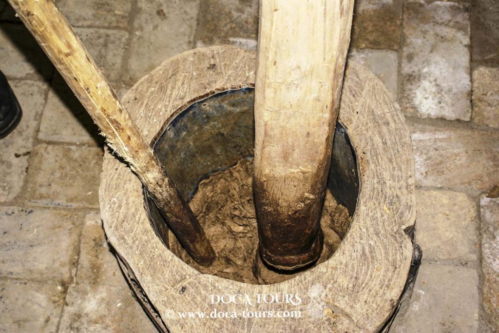 4️. Danach werden sie in einer Steinmühle 7–8 Stunden zermahlen, bis eine faserige Masse entsteht.