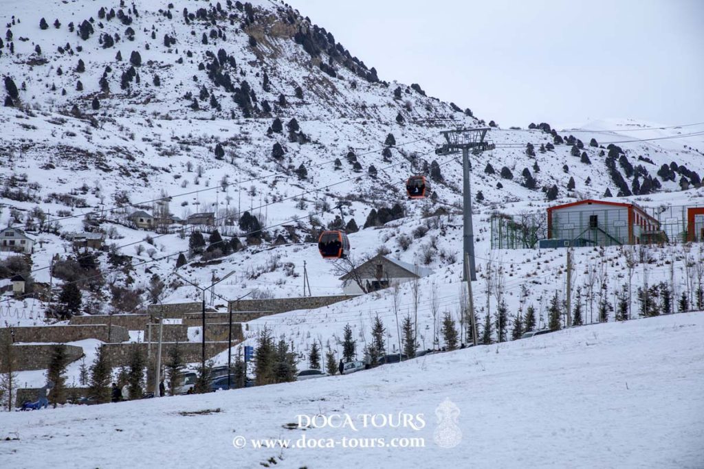 Die „Safed Dara“-Seilbahn wurde nach den gleichen Plänen wie die olympische Seilbahn in Sotschi gebaut. Die Fahrt zum oberen Plateau auf 2600 Metern dauert etwa 7 Minuten. Pro Stunde kann die Bahn bis zu 2.000 Menschen befördern.
