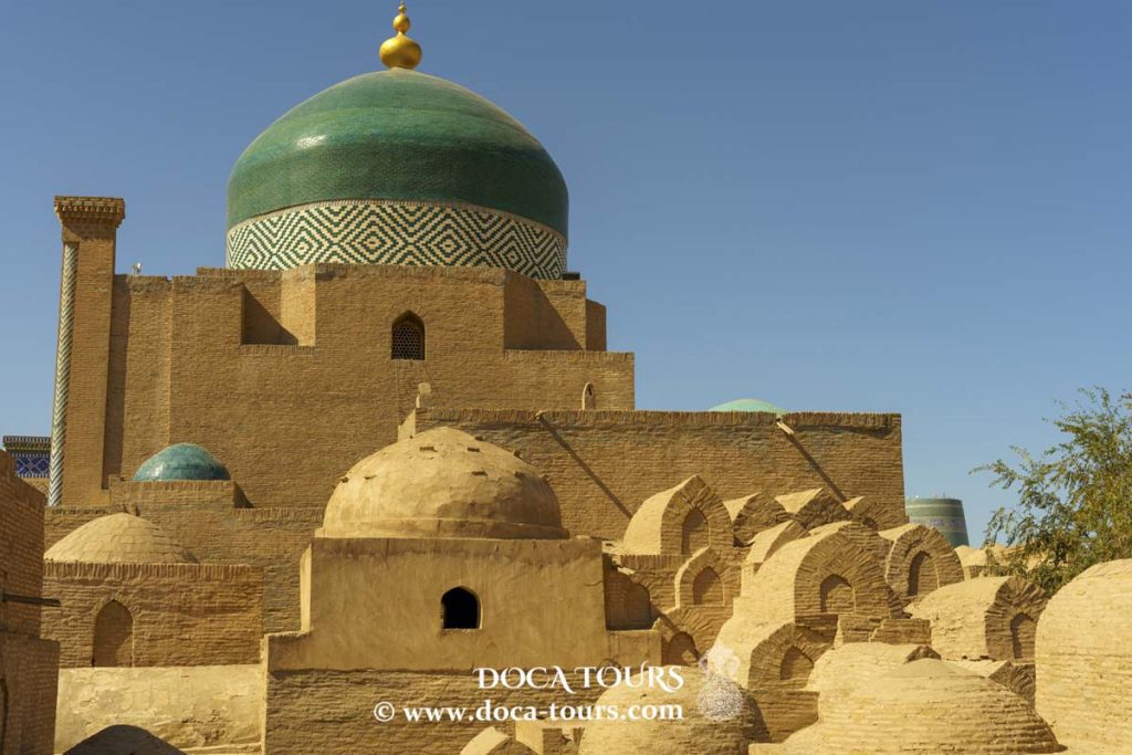 Die ummauerte Altstadt von Chiwa ist ein lebendiges Freilichtmuseum, das zwar unter dem Schutz der UNESCO steht, aber nach wie vor von usbekischen Familien und Geschäften bewohnt wird.