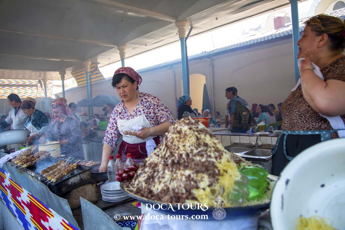 - Danach besuchen wir den Siyob-Basar und probieren das berühmte Samarkander Brot, das in traditionellen Lehmöfen (Tandyrs) mit Baumwollzweigen beheizt wird.