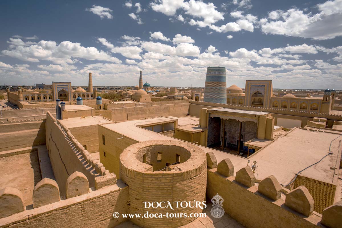 Nach Ankunft Check-in und Besichtigung von Ichan Kala, der inneren Festung von Khiva (UNESCO-Weltkulturerbe):