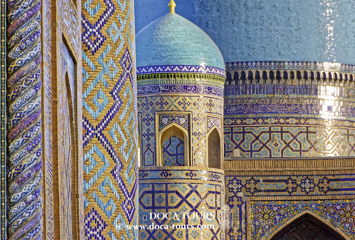 - Gur-Emir-Mausoleum: Die Grabstätte von Amir Timur (Tamerlan) und seinen Nachkommen, reich verziert mit kunstvollen Mosaiken.