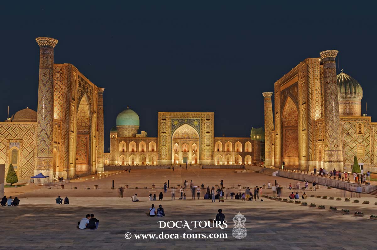 Besuch des berühmten Registan-Platzes mit seinen atemberaubenden Medresen und einem lebhaften Kunsthandwerksmarkt.