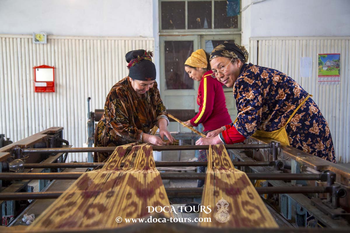 Besuchen Sie die Yodgorlik-Seidenfabrik, in der Sie den aufwendigen Prozess der Seidenweberei mit traditionellen Ikat-Mustern beobachten und authentische Khan-Atlas-Stoffe kaufen können.