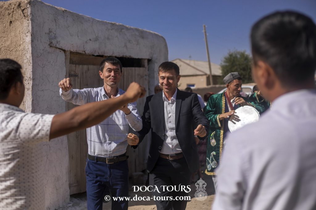 Todas las grandes celebraciones familiares en Uzbekistán están acompañadas de música. Por lo general, también hay un presentador que entretiene a los invitados, lee poesía e invita a la gente a felicitar a los recién casados.
