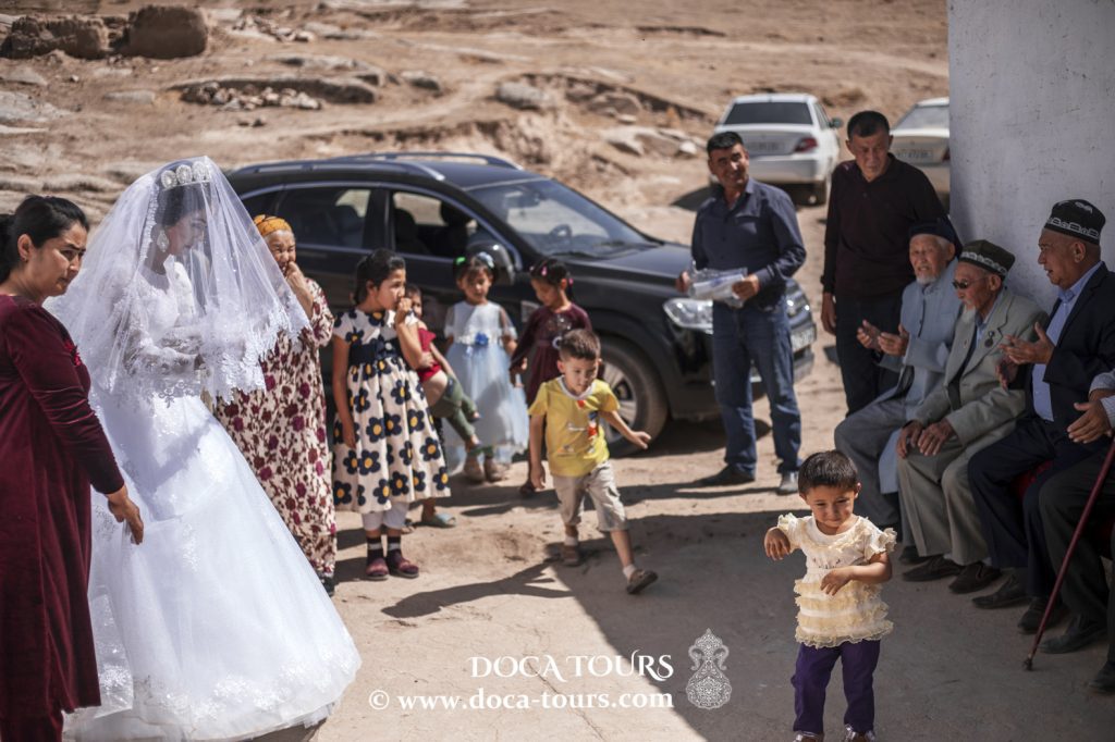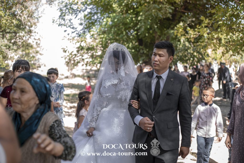 Después del pilaf matutino, todos los hombres se reúnen cerca de la casa del novio y bendicen a los recién casados. El mullah lee una breve oración y, después de eso, el novio, acompañado por sus amigos, va en una comitiva a buscar a la novia a su casa, donde, por supuesto, lo están esperando.