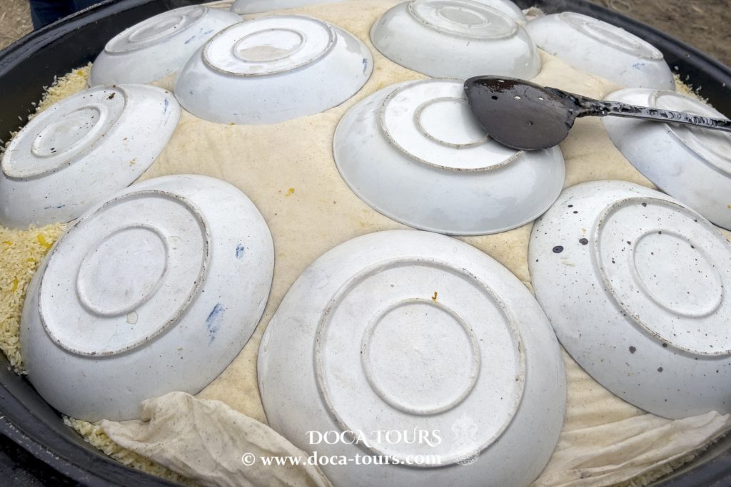 Como podemos ver, aquí el plov se cocina tradicionalmente con leña. La leña le da al plov un sabor especial que no se puede conseguir en casa.