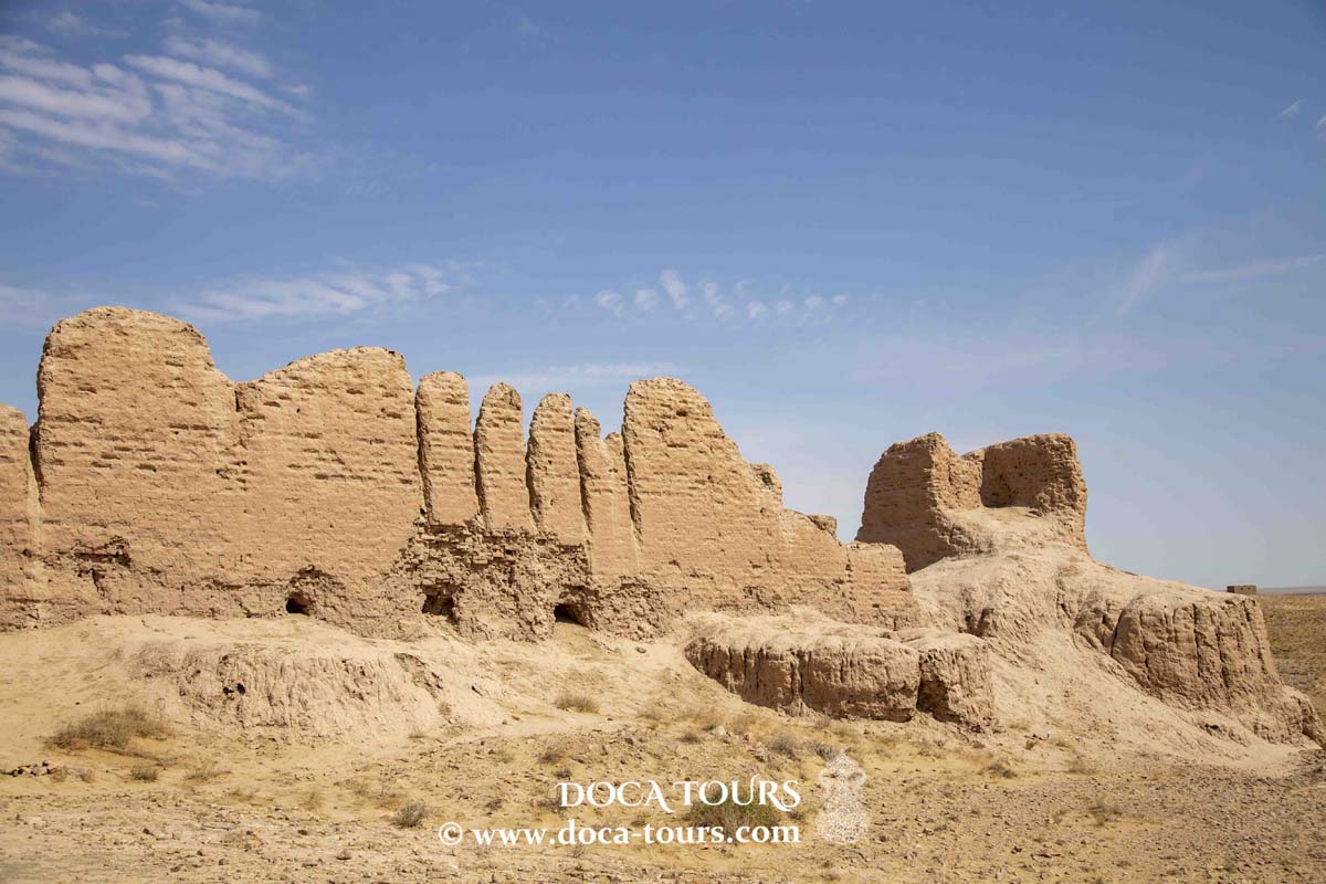 🐫 Ayaz-Kala – Una de las mayores fortalezas de Jorezm, que ofrece la experiencia de un campamento de yurtas y paseos en camello.