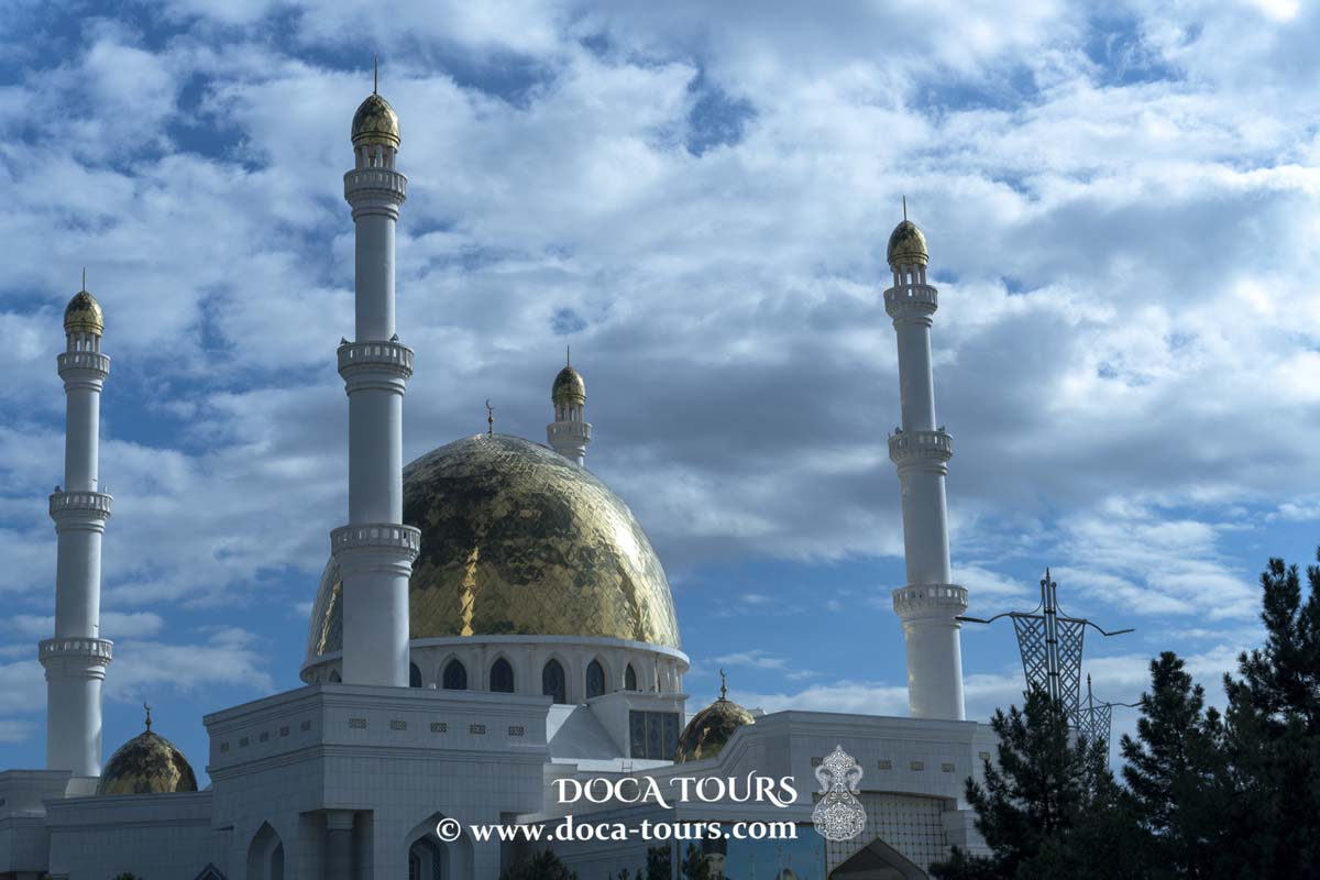• Admira la Mezquita Central de Almatý, una de las mezquitas más grandes de Asia Central. Las cúpulas doradas y la imponente fachada de mármol blanco le dan una presencia regia, mientras que el interior impresiona con su simplicidad artística.