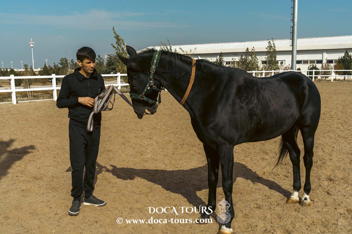 En el viaje de regreso a Asjabad, se detendrá en los establos de caballos Akhalteke, donde aprenderá sobre estos caballos legendarios y su importancia para la identidad nacional de Turkmenistán.