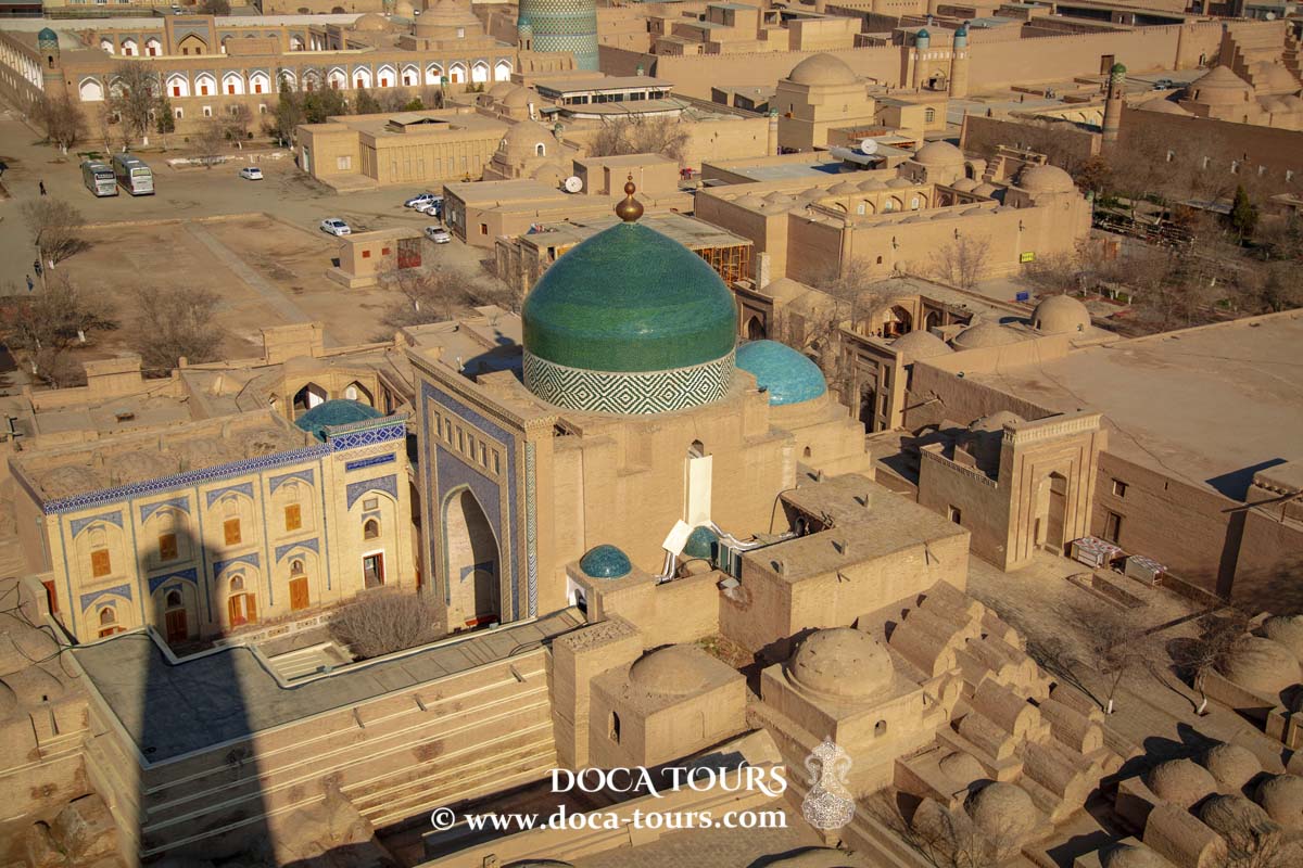 Después del desayuno, inicia tu recorrido a pie por el complejo arquitectónico Ichan Kala, el centro histórico de la ciudad y Sitio Patrimonio Mundial de la UNESCO. Este complejo urbano ha sido casi completamente conservado durante los últimos 1500 años, ofreciendo un increíble viaje a través del tiempo. El tour incluirá: