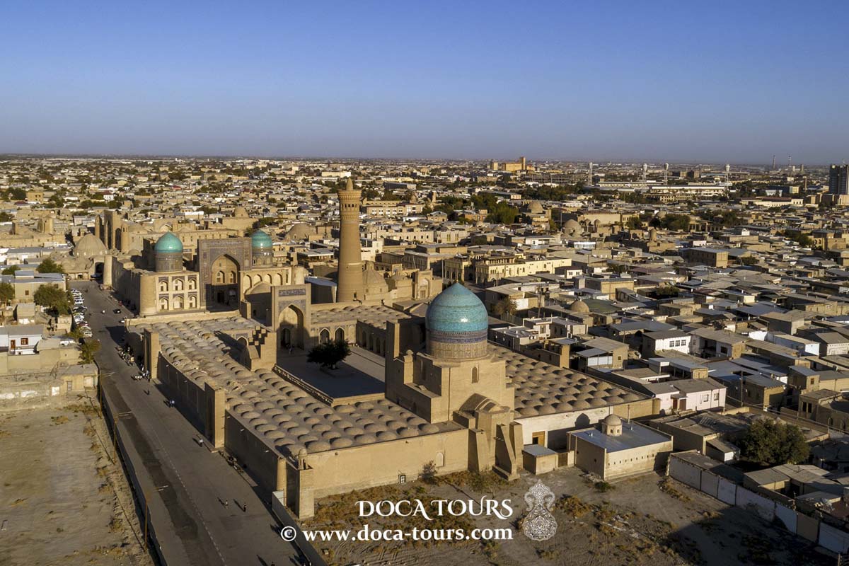 Hoy realizarás un recorrido a pie por la ciudad de Bujará, de 2500 años de antigüedad. Visitas la Ciudadela Ark, la mezquita Bolo Khauz, Chashma Ayub y el mausoleo de los Samaníes – los edificios más antiguos de Bujará. Por la tarde, verás el enorme complejo arquitectónico de Poi Kalyan. Visitarás los bazares cubiertos y las calles comerciales de los orfebres de Toki Zargaron, los sombrereros de Toki Telpak Furushon, el complejo arquitectónico Kosh Medrasa con las medresas de Ulugbek y Abdulaziz Kan. Luego podrás relajarte con una taza de té en la fuente de agua fresca del complejo Lyabi Khauz. Podrás escuchar algunas historias y leyendas frente al monumento de Nasreddin en el burro, una versión oriental del Barón Munchausen.