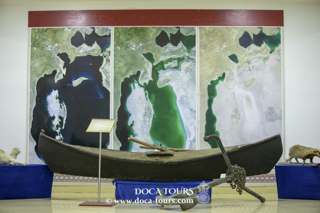 Moynaq possède également un mémorial de la mer d’Aral à l’extrémité nord de la ville, entouré des vestiges rouillés des bateaux de pêche. Ce "cimetière de navires" rappelle brutalement les conséquences économiques catastrophiques liées à la disparition de la mer d’Aral. De plus, le musée de Moynaq expose une collection de peintures, photographies et objets illustrant la prospérité passée de la ville, mettant en lumière des industries telles que la pêche, l’élevage de fourrure et la fabrication de nattes en jonc.