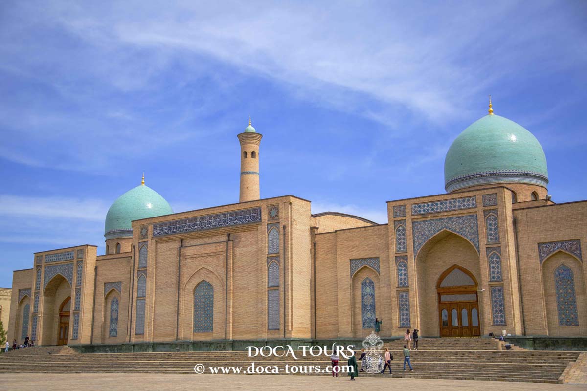 Vous pourrez admirer à Samarkand : l’un des emblèmes de l’Ouzbékistan – la célèbre place Registan avec ses merveilleuses médersas, qui ne vous laissera pas indifférent et restera à jamais dans vos souvenirs de Samarkand. Ensuite, visite du mausolée palais Guri Emir du souverain Timur. L’après-midi, visite de la mosquée Bibi Khanim, autrefois considérée comme l’un des plus grands édifices sacrés de l’Orient. Selon la légende, Tamerlan a fait construire la mosquée pour son épouse bien-aimée. Puis, direction le bazar Siyob pour goûter au pain de Samarkand, célèbre dans tout l’Ouzbékistan, dont l’arôme particulier vient des fours en argile (Tandyrs) chauffés avec des brindilles de coton. En fin d’après-midi, nous prenons le train rapide « Afrosiyob » pour Tashkent. Transfert à l’hôtel. Dîner dans un restaurant local. Nuit à Tashkent.