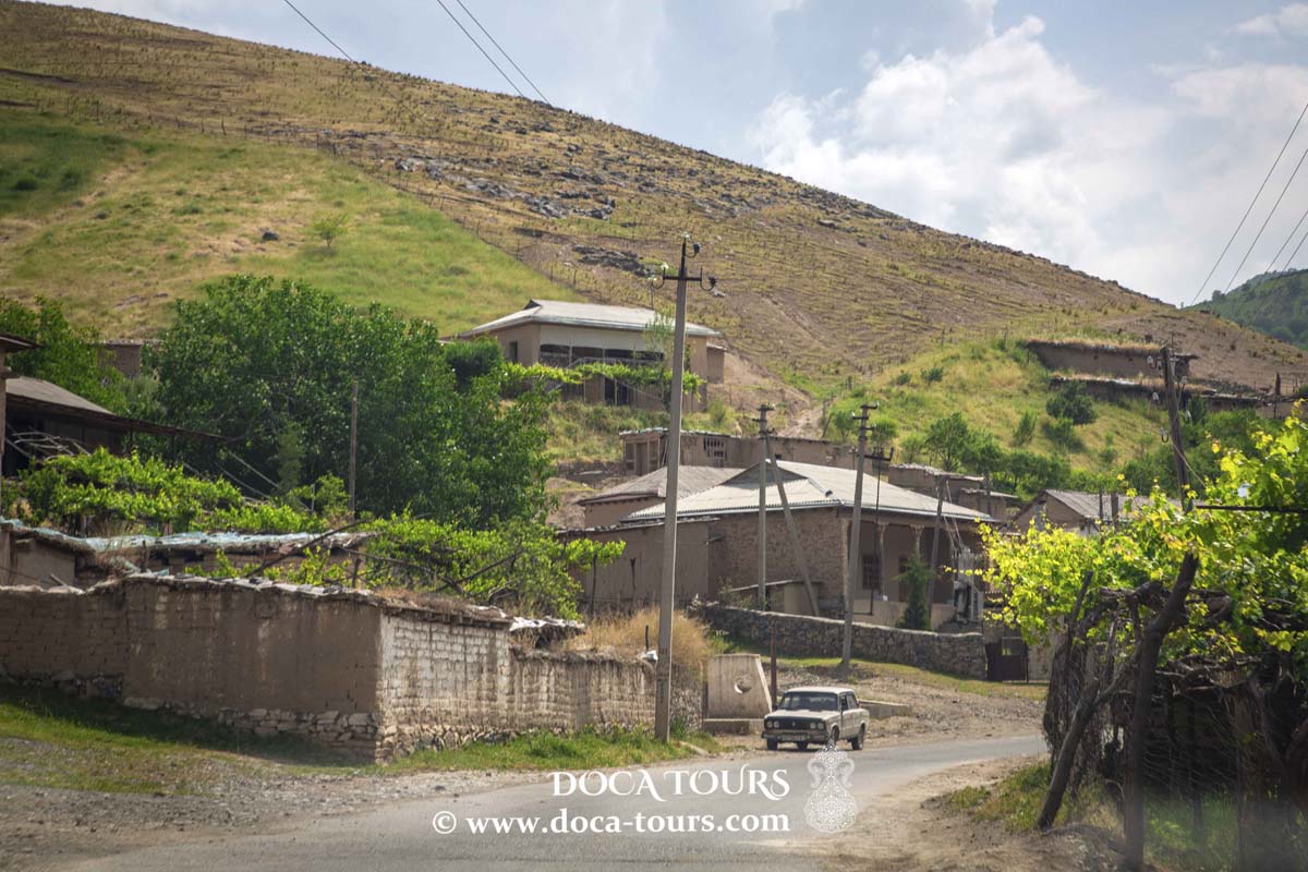 Nous randonnons à travers le magnifique village jusqu’à Alvastikul (le Lac du Diable), environ six heures de marche. Puis nous continuons vers Takhtakaracha (1250 m) jusqu’au niveau supérieur des rivières d’Ayakchi. Des vues à couper le souffle partout. Déjeuner pique-nique. Dans l’après-midi, arrivée au village de Sholipoya (1200 m). Dîner et nuit chez une famille dans le village de Sholipoya.