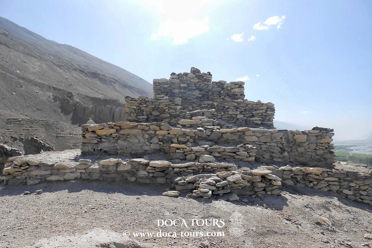 Commencez la matinée par un petit-déjeuner copieux avant d'entamer le trajet de 140 kilomètres qui relie Ishkashim à Langar. Ce parcours, qui dure environ 6 heures, est ponctué de nombreux arrêts fascinants mettant en valeur l'histoire et la culture de la vallée du Wakhan.