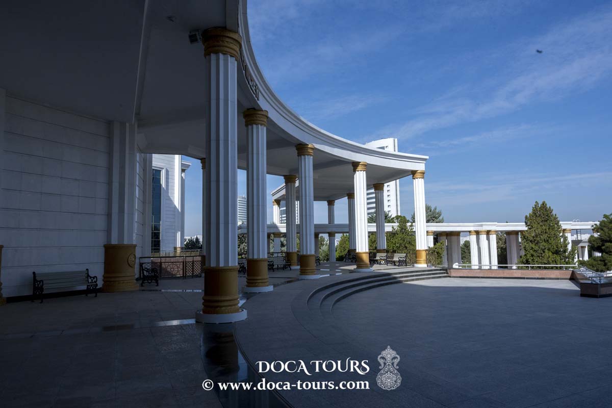Arc de la Neutralité : Une tour impressionnante de 95 mètres surmontée d’une statue dorée tournante de Turkmenbashy. Montez à la tour via un funiculaire pour profiter d’une vue panoramique sur la ville et explorez un petit musée.