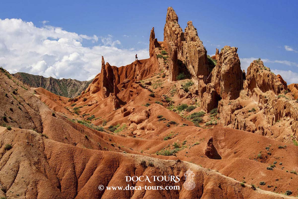 ✔ Explorez le Grand Canyon caché du Kirghizistan – Marchez au milieu de formations de grès rouge et de flèches rocheuses spectaculaires.