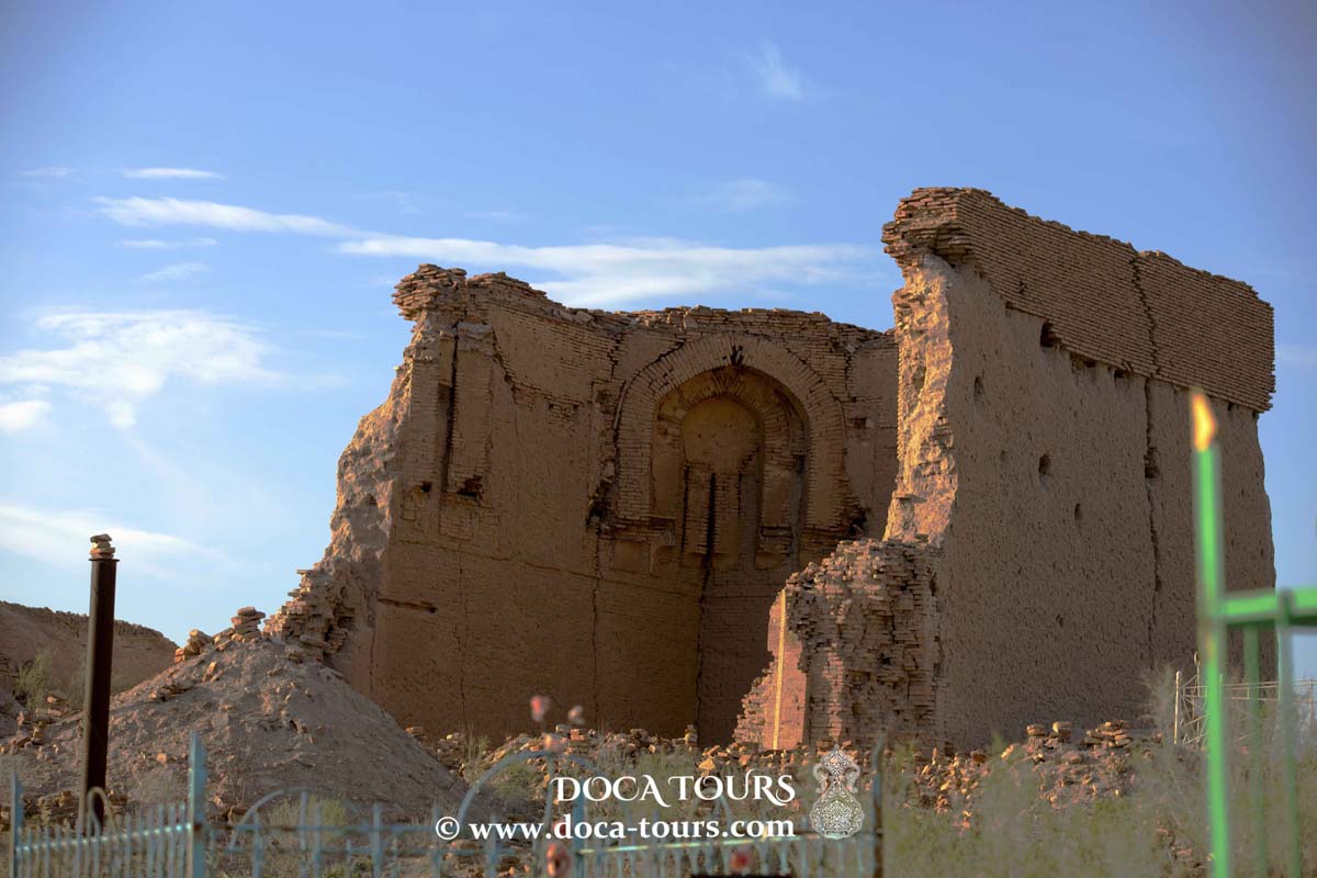Visitez ensuite la forteresse de Gyaur Kala, une ancienne place forte au nom signifiant « Forteresse des Infidèles ». Datant d’avant l’ère islamique, elle servait de bastion défensif majeur jusqu’à sa destruction par Gengis Khan lors de ses conquêtes.