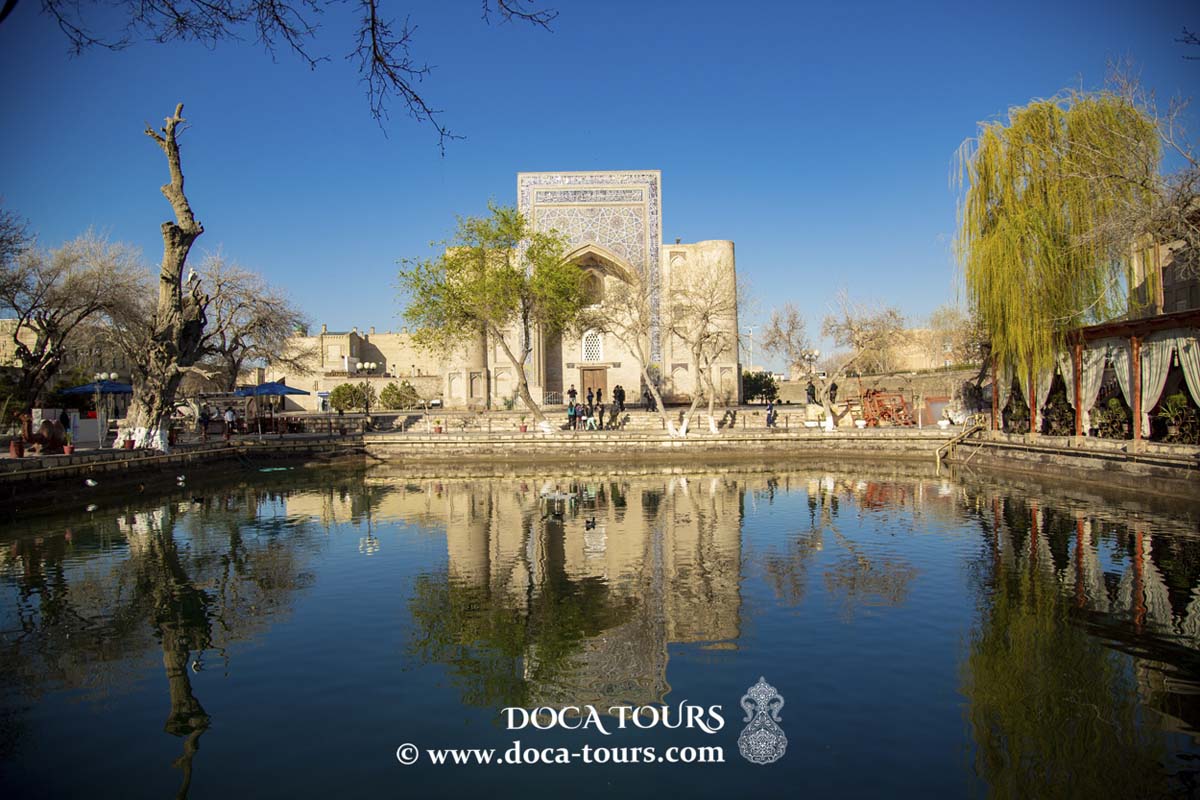 Après le petit-déjeuner, prenez le train matinal pour Boukhara (580 km). À l’arrivée, transfert à l’hôtel dans la vieille ville. Profitez d’une visite guidée à pied des principaux sites :
