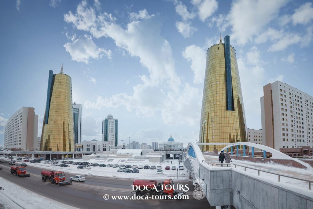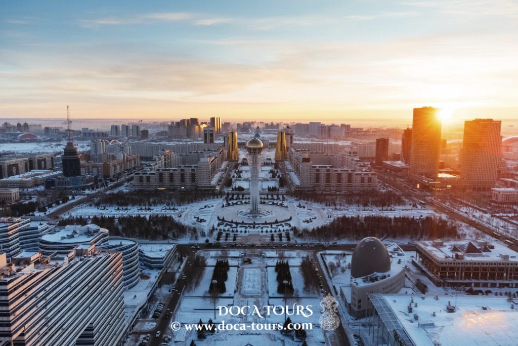 La città è magnifica e mozzafiato dall’alto. Il complesso Baiterek, situato nel centro, rappresenta lo sviluppo del Kazakistan sia sul piano spirituale che culturale. Nei dintorni si ergono diverse strutture imponenti, tra cui complessi residenziali, hotel ed edifici per uffici.