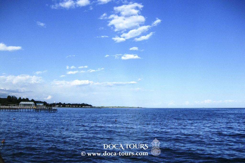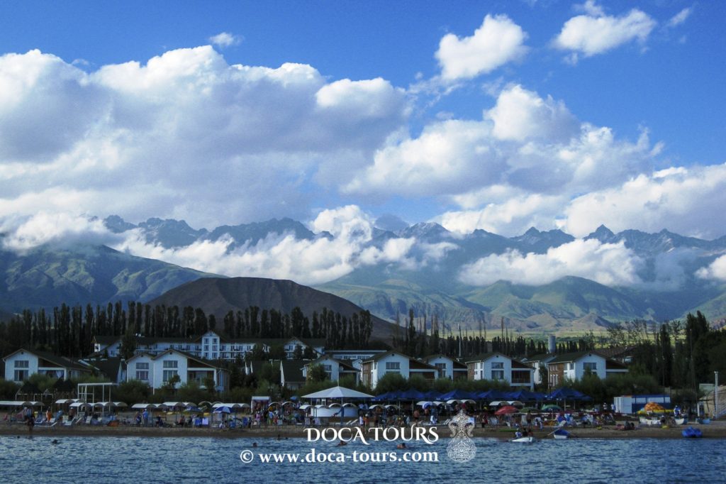 Issyk-Kul, il secondo lago di montagna più grande al mondo dopo il Lago Titicaca in Sud America, è uno dei laghi alpini più vasti ed eleganti al mondo. Ha una lunghezza di 170 km e una larghezza di 70 km. Poiché la profondità massima del lago è di 700 metri, l’acqua si riscalda in modo non uniforme. Poiché i massicci settentrionali sono più bassi rispetto a quelli meridionali, l’acqua nella zona di Cholpon-Ata si riscalda di tre o quattro gradi in più rispetto ad altre aree. Nella zona del resort di Tamga, sulla costa meridionale, la temperatura dell’acqua non supera i venti gradi.