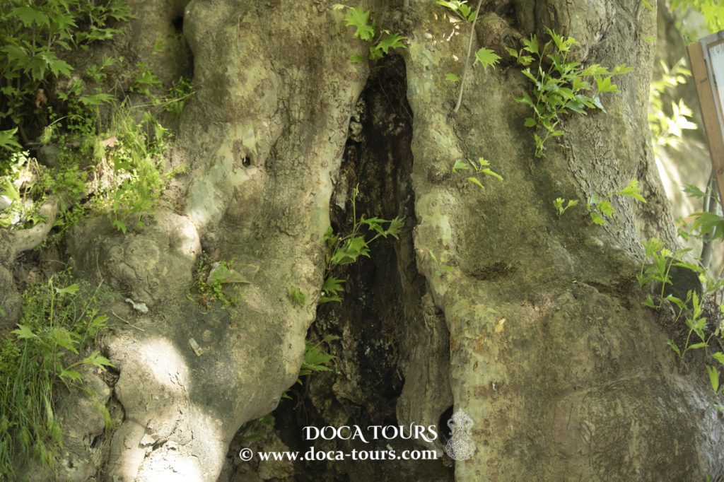 A prima vista, questo peculiare parco sembra solo una gola ricoperta di rami d’albero. Alcuni platani hanno tronchi di diametri piuttosto impressionanti, e le loro chiome si sono intrecciate così densamente nel corso dei secoli da apparire inseparabili. Gli alberi sono ben protetti, e ognuno di loro ha una targa informativa sul tronco che indica la loro età approssimativa. Gli esemplari più antichi hanno circa 600 anni, mentre alcuni superano i 1.000 anni.