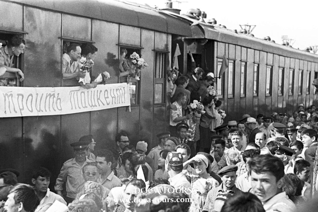 I ferrovieri calcolarono che, se tutti i vagoni con gli aiuti provenienti dai paesi fraterni fossero stati collegati, il treno avrebbe avuto una lunghezza pari alla distanza da Tashkent a Mosca. Tra coloro che ricostruivano Tashkent, c’erano 10.000 studenti provenienti da tutta l’Unione Sovietica.