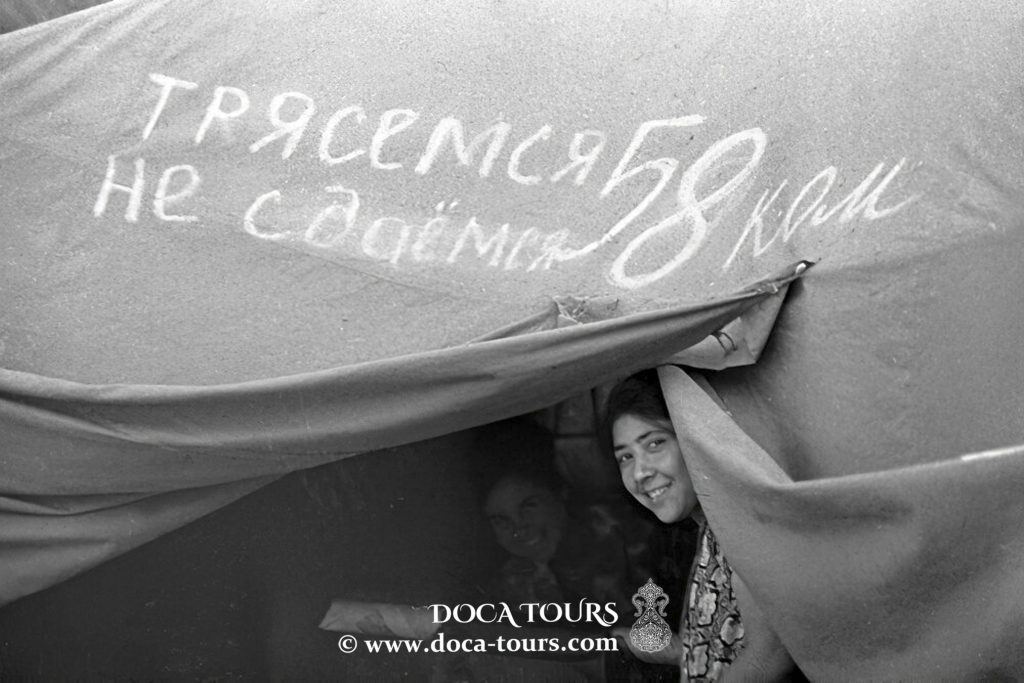 Così, pochi giorni dopo il terremoto, tutta la popolazione di Tashkent si trasferì per strada. Per questo, il governo distribuì 16.000 tende dell’esercito. Non solo vivevano nelle tende, ma anche lavoravano. Le tende venivano utilizzate come farmacie, ambulatori, uffici postali, mense, ecc.