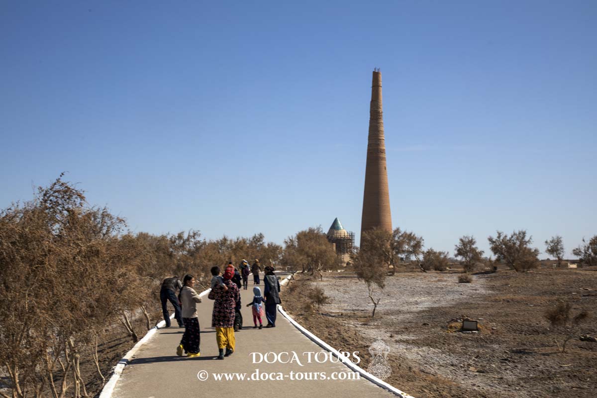 L’avventura inizia con un volo mattutino da Ashgabat a Dashoguz (580 km, 50 minuti). All’arrivo, il vostro autista privato e la guida vi accoglieranno in aeroporto e vi accompagneranno a Kunya-Urgench, l’antica capitale dell’Impero di Khorezm (120 km, 1,5 ore).
