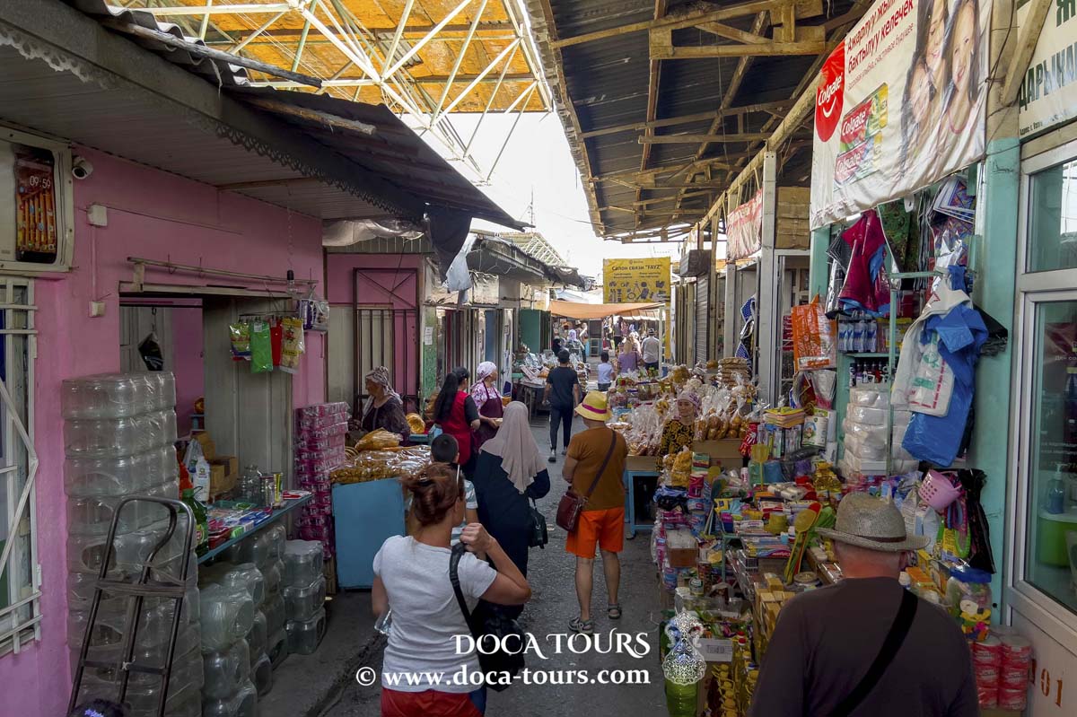 Proseguendo l’esplorazione, visiterete il Bazaar di Uzgen, un mercato tradizionale che ha mantenuto la sua autenticità, in gran parte intatto dal turismo. Passeggiando tra le vivaci corsie del mercato, troverete una varietà di prodotti locali come frutta, spezie, tessuti e souvenir artigianali. La vostra guida vi racconterà curiosità sulla vita quotidiana e sulle tradizioni rimaste invariate per oltre un secolo, offrendo anche consigli su come contrattare con i venditori locali—un’autentica esperienza della cultura locale.