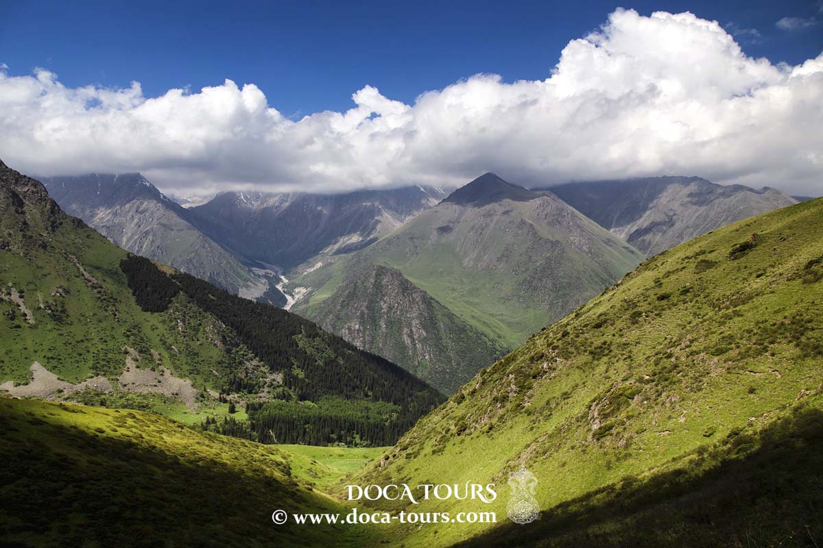 Questo percorso è perfetto per chi preferisce un trekking più leggero e offre uno scorcio della bellezza naturale del parco. Partendo dal Campo Alpino (2200 metri), si cammina attraverso una foresta lussureggiante, respirando l’aria fresca di montagna e ascoltando il canto degli uccelli. La prima sosta sarà il Broken Heart (2380 metri), un masso drammatico spaccato a metà, che assume la forma di un cuore spezzato. Da questo punto panoramico, è possibile godere di una vista ampia sul canyon, sulla valle sottostante e persino scorgere in lontananza la cascata Ak Sai. Dopo aver ammirato il panorama, il sentiero continua verso l’altopiano di Tepshi (2460 metri), un bellissimo prato circondato da alte cime. L’altopiano offre un luogo sereno per riposare, scattare fotografie e gustare un pranzo al sacco. Le viste sono davvero impareggiabili, con capre di montagna spesso avvistate al pascolo in lontananza, rendendolo un luogo ideale per gli amanti della natura.