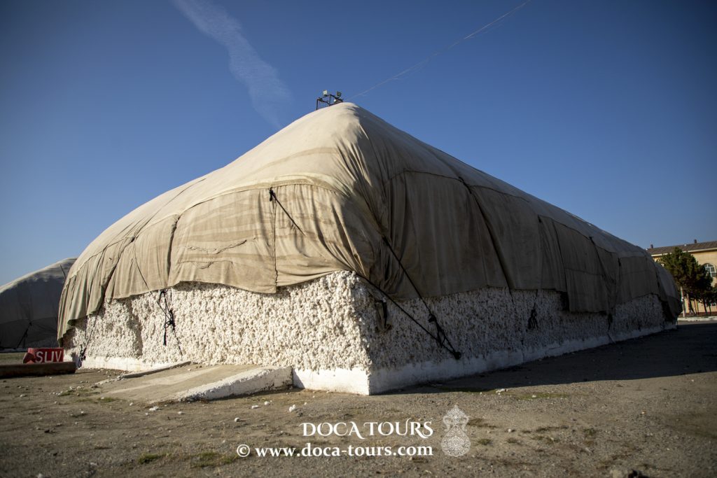 Naturalmente, l’argomento del cotone è vasto. Oggi desideriamo illustrarvi una delle fasi della sua lavorazione. Durante i mesi di settembre e ottobre, viaggiando per l’Uzbekistan, non potrete fare a meno di notare i campi di cotone e le aree di raccolta: ampie zone rurali solitamente delimitate da alte recinzioni, dietro le quali si ergono imponenti cumuli del “oro bianco” raccolto.