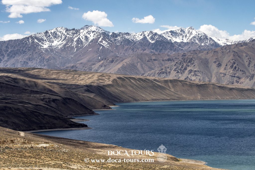La bellezza del Lago Karakul non è data solo dal suo brillante colore azzurro, ma anche dal paesaggio pittoresco che si riflette nelle sue acque, incorniciato dalle cime innevate dei Pamir. Intorno al lago si estende una catena montuosa che raggiunge i 7000 metri, tra cui spiccano il Lenin Peak e l’Avicenna Peak. Inoltre, grazie all’elevata altitudine, il cielo sembra più vicino e di un colore più intenso, mentre di notte la Via Lattea brilla intensamente sopra il lago.