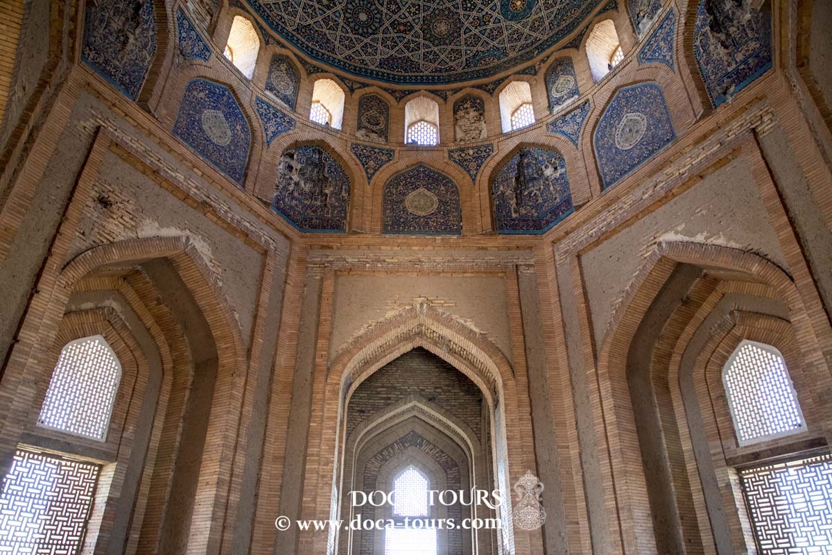 In the morning, your driver will take you to the border crossing between Uzbekistan and Turkmenistan. You will need to walk approximately 1.5 kilometers (around 1 mile) without assistance as part of the border formalities. Upon crossing, you will meet your new guide on the Turkmenistan side and continue your journey to Kunya-Urgench, an ancient city once part of the Khwarezmian Empire.